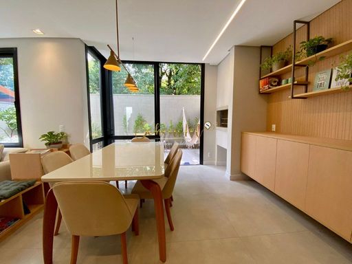 Casa mobiliada e decorada, nova, nunca habitada, tendo 172,73 metros quadrados de área privativa, com 03 dormitórios, sendo 01 suíte master, ambientes sociais integrados, lavabo, cozinha gourmet, pátio interno privativo e garagem ara 02 carros, lado a lado. O condomínio contempla uma arquitetura única que possibilita flexibilidade quanto a planta interna com 03 dormitórios, sendo 01 suíte e ou 02 suítes + home office ou estar íntimo lavabo. As casas estão preparadas para energia solar. Conceito de condomínio racional com playground, mini pomar e linda área de circulação para um chimarrão e aquele passeio diário com seu pet. A vizinhança do condomínio é verde e tranquila, e está a poucos metros de um dos maiores parques da cidade. Agenda uma visita e encante-se com o Nilo !